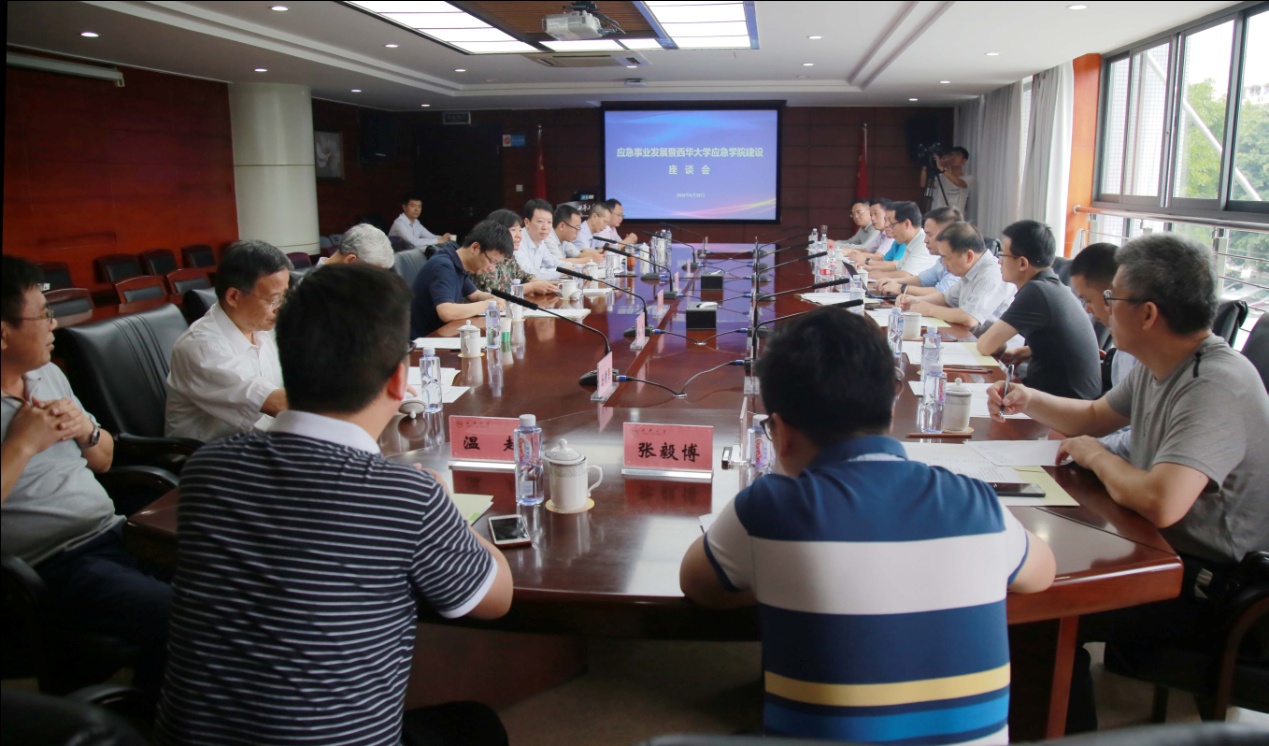 座谈会现场气氛热烈,与会专家肯定了学校在应急领域的成绩及对四川应急产业的贡献,并结合宜宾长宁地震,共同探讨应急管理事业和学校应急专业发展。